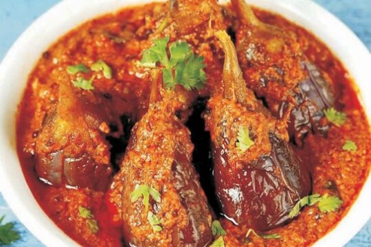 Achari Brinjal and Potato Curry